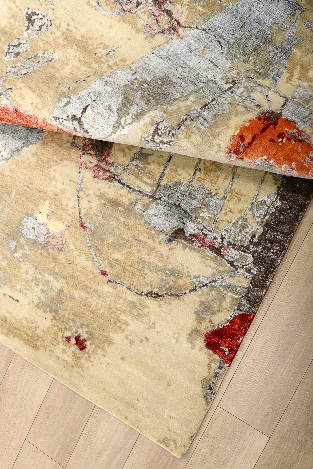 Бамбуковый шелк – гипоаллергенное волокно, придающее блеск орнаменту ковра.Высокая плотность Соткан с применением двойного узелка.