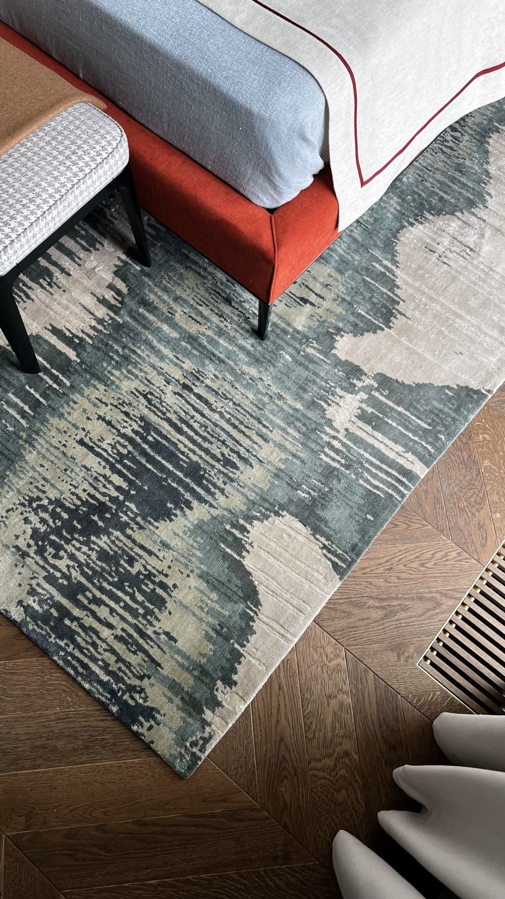 Бамбуковый шелк – гипоаллергенное волокно, придающее блеск орнаменту ковра.Высокая плотность Соткан с применением двойного узелка.