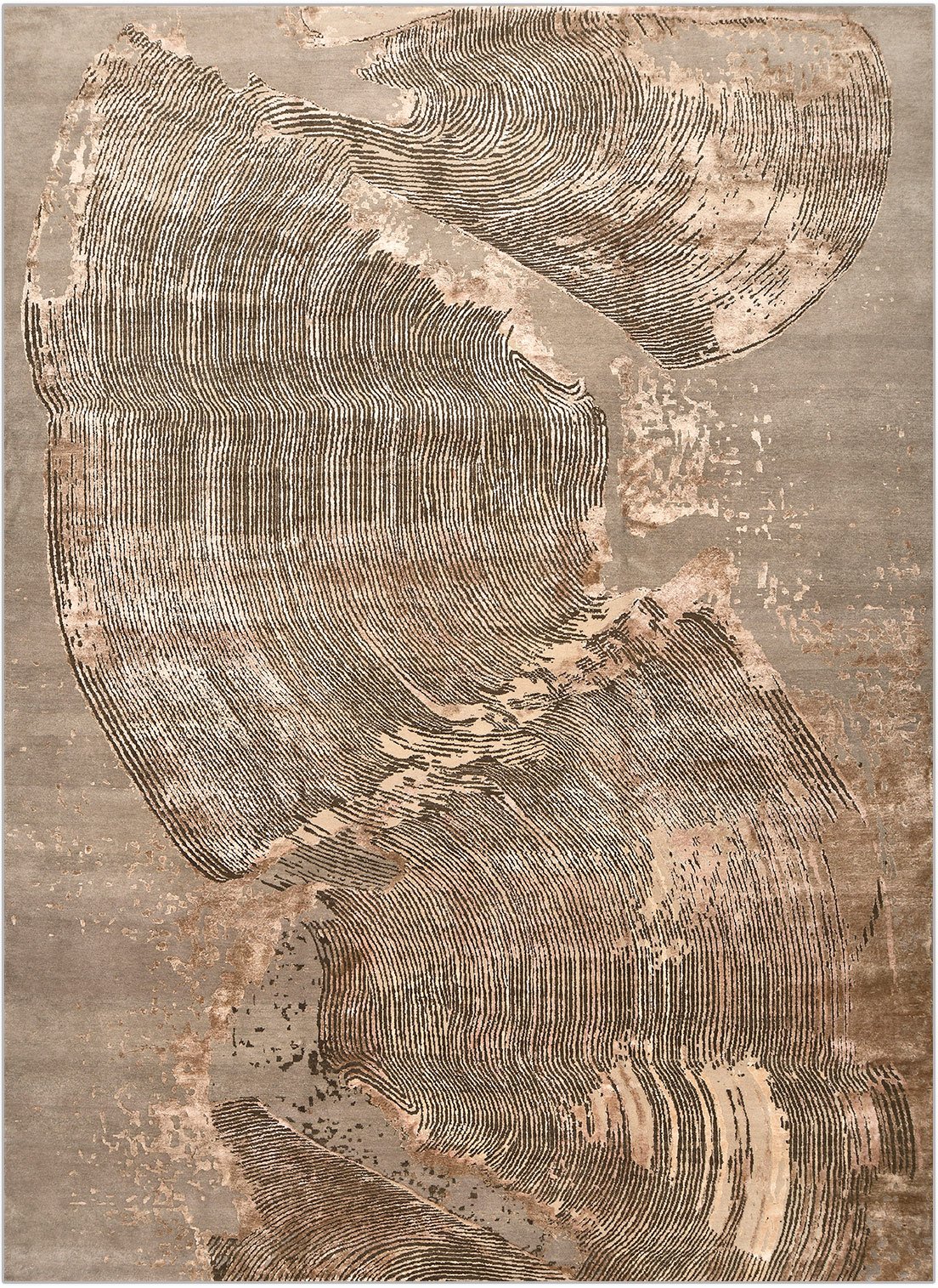 Стильный ковер ручной работы соткан мастерами высокой квалификации из дорогих натуральных материалов. Ковер для современного дизайнерского интерьера. В наличии второй аналогичный ковер незначительно отличающийся по размеру: /sherst-shelk/trace/